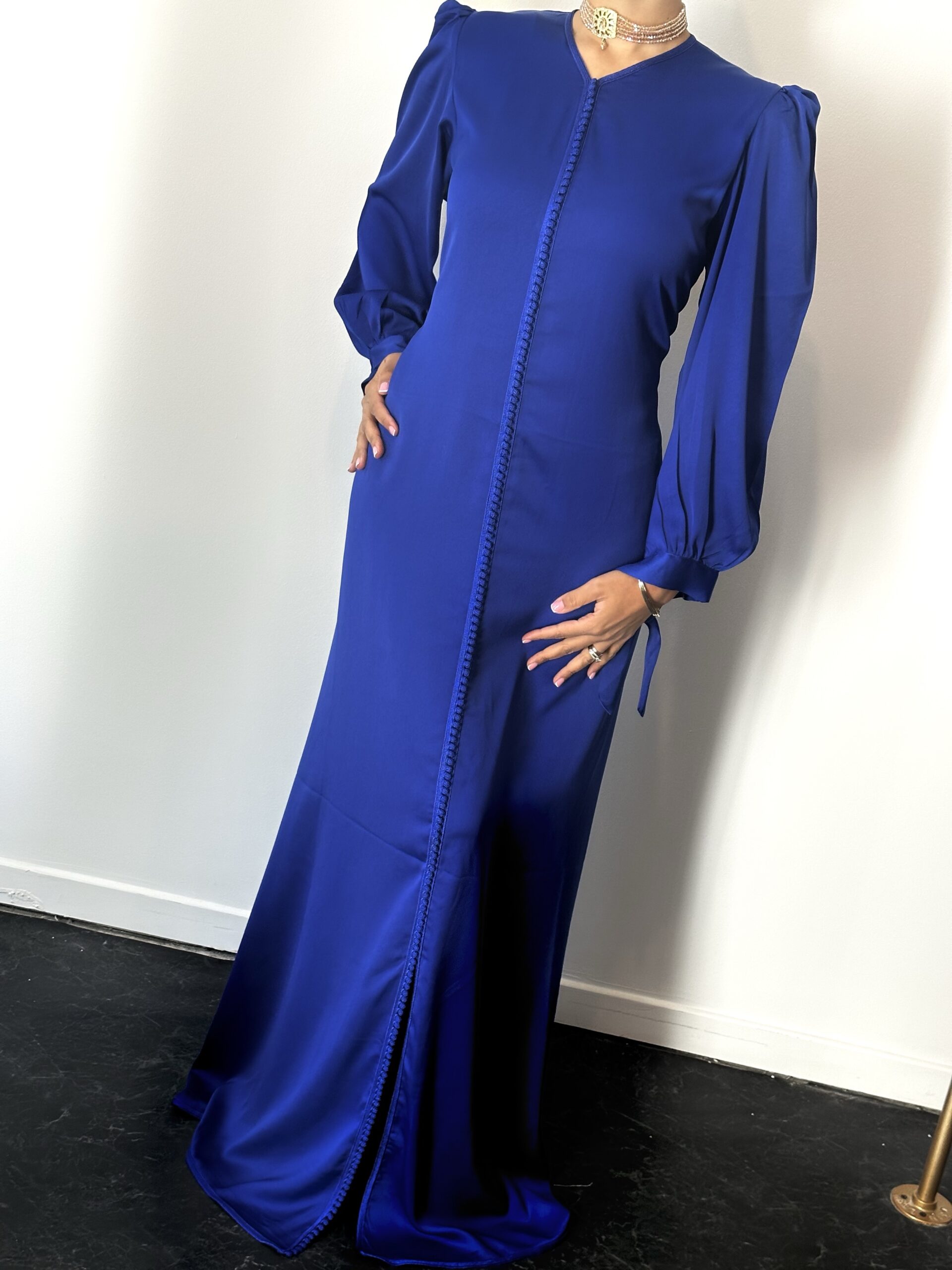 Immergez-sous dans l’élégance éthérée de notre robe orientale Mansour déclinée en bleu azur, rouge profond. vert pistache. nude. gris et noir. Les détails exquis des coutures orientales et son tissu somptueux accentuent la robe, créant un tableau de sophistication et de raffinement. La coupe fluide épouse délicatement la silhouette, soulignant la grâce naturelle de celle qui la porte. Les manches longues ajoutent une touche de mystère. tandis que la légère traine évoque le glamour d’une princesse. Cette robe n’est pas seulement un vêtement, c’est une teuvre qui transcende le temps et transporte celle qui la revêt dans un monde de célébration et d’élégance. Une tenue qui incarne la splendeur et l’esprit festif des nuits orientales. Disponible en plusieurs colotis.